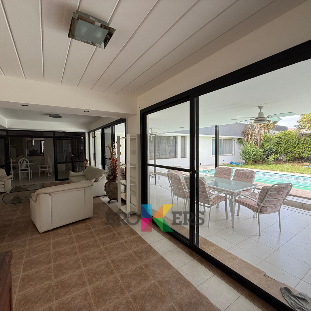En el exterior, se destaca un amplio jardín con pileta y quincho, perfecto para disfrutar al aire libre. Posee patio y 2 cocheras. La propiedad cuenta con vigilancia para mayor seguridad.